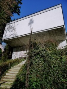 Kunst im Verborgenen. Der Blick übern Bodensee herrscht hier nur theoretisch vor. Denn obwohl in begehrtester Lage am nordöstlichen Ufer hoch überm See trohnend, lässt das Fähnle-Museum im badischen Überlingen die großen Panoramascheiben vermissen und setzt stattdessen auf innere Aussichten. Das Geheimnisvolle beginnt schon beim Zugang – eine schmale Treppe windet sich einen romantisch verwachsenen Gartenhang so steil hinauf, dass der schwebende Ausstellungskubus dem uneingeweihten Passanten kaum ins Auge fällt. Und auch das Gebäude selbst gibt sich zugeknöpft. Hermetisch verriegelt kragt der helle Kubus über dem Sichtbetonsockel aus, der starke Materialkontrast unterstreicht den skulpturalen Charakter. Über die Architektur der Fähnle-Galerie ist bislang wenig bekannt, dies zu ändern und die Galerie wieder der Öffentlichkeit zugänglich zu machen, hat sich der im Jahr 2012 gegründete Förderverein zur Aufgabe gemacht.