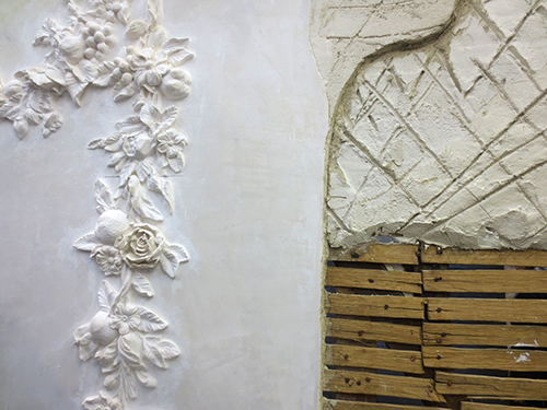 Fundsache Biennale. Stuckwand unter den ‘Fudamentals’, der vom Komissär Rem Kolhaas kuratierten Hauptausstellung der 14. Architekturbiennale Venndig, die dieses Jahr erstmals von Juni bis November lief.