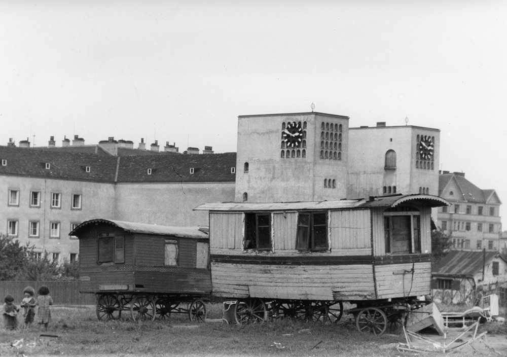 Die fahrende Behausung der Roma und Sinti – hier in einer Aufnahme aus den 1940er Jahren auf der Wiener Hellerwiese – zeigt eine Frühform grenzüberschreitender Mobilität unter den Vorzeichen von Ausgrenzung, Vorurteilen und Verfolgung. Nur ein Aspekt der soeben im Wienmuseum eröffneten Ausstellung ‘Romane Thana – Orte der Roma und Sinti’. Heikles Thema allemal, und damit altbekannte Stereotype gar nicht in Gefahr geraten, fortgeschrieben zu werden, setzte das Ausstellungskonzept von Anfang an auf die Partizipation von VertreterInnen der Volksgruppe selbst. Im Fokus stehen „Lebensorte” der Roma und Sinti in Wien und Burgenland. Dazu zählen die seit dem 18. Jahrhundert bestehenden Siedlungen der Burgenland-Roma, traditionelle Plätze in Wien, aber auch die Orte, die über die lange Verfolgungsgeschichte und den NS-Völkermord erzählen, wie Lackenbach, Auschwitz oder Łódź.