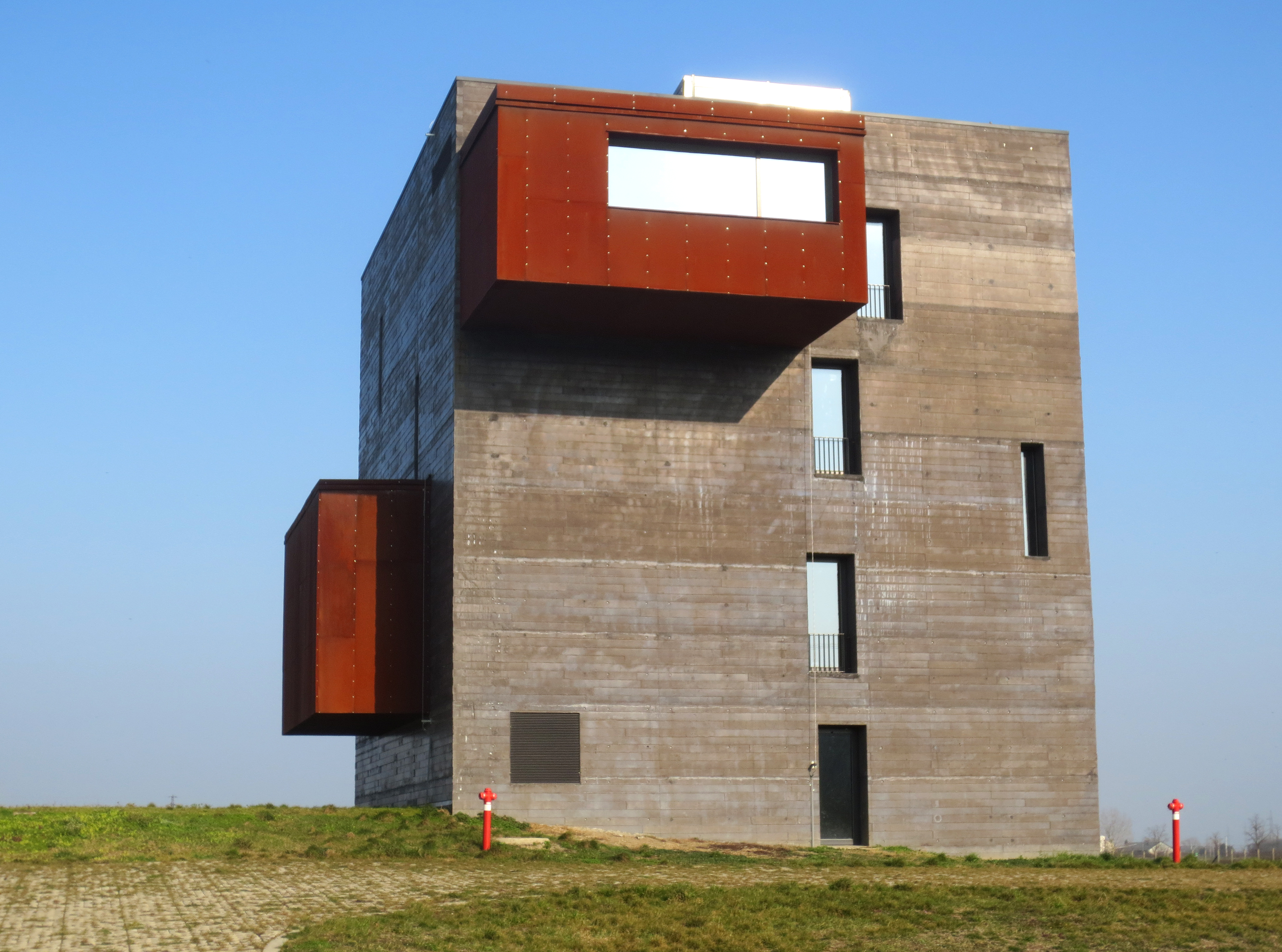 Im ungarischen Celldömölk, gerade mal 150 Kilometer von Wien entfernt – ehemaliges Vulkanland gibt es beiderseit der österreich-ungarischen Grenze – steht das 2013 eröffnete neue Besucherzentrum des Kemenes Vulkánparks, das der Budapester Architekt Laszlo Földes als Gewinner des 20011 durchgeführten landesweiten Wettbewerbs realisieren konnte. Das in Beton gegossenen Feuer des erloschenen Vulkans, auf dem das kubische Gebäude errichtet ist, nennt Földes als Metapher, auch Picassos kubistische Gemälde ließen sich beim Durchschreiten der Ausstellungsräume erfahren. Das Vulkanische setzte er daher auch nicht in Anlehnung an die topographische Erscheinungsform eines Vulkan als Kegel oder Pyramide um, sondern nahm in der Materialität von rohen Betonwänden und rostigem Stahl auf die Kraft der Elemente Bezug. Fließende Raumübergänge, einfallende Lichtstrahlen, übereinanderliegende Brücken und auskragende Cortenstahlkuben tragen ihr Übriges zum vulkanischen Raumerlebnis bei …