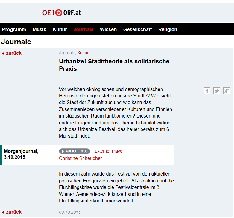 ‘Ein Stadtfest der anderen Art’, das da auf die Straßen lockt, oder ‘Alle Achtung vor den Veranstaltern, die dem eigenen Festivalmotto so couragiert gefolgt sind!’ … eine Auswahl der Pressestimmen rund um das urbanize!-Festival … die ‘Pressereferentin’ sagt DANKE!