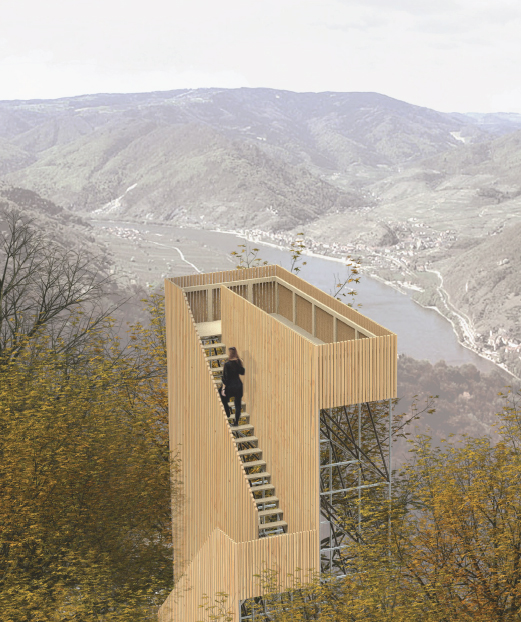 Eine neue Aussichtswarte mit Blick in die Wachau haben die Architektin Eldine Heep und der Designer Klemens Schillinger auf den Seekopf gestellt, die alte war marod gewesen und 20 Jahre Weltkulturerbe Anlass genug zum feierlichen Neubau.