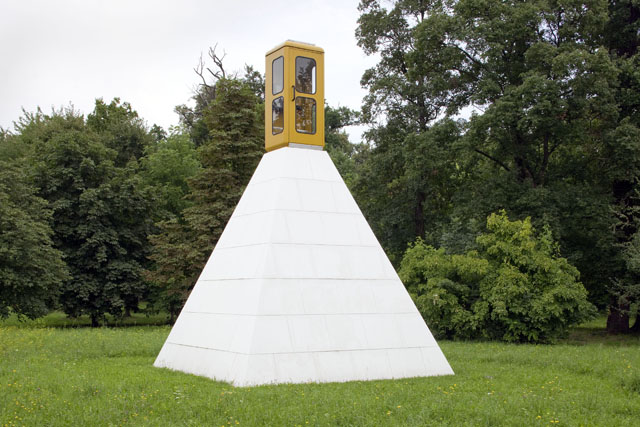 Und lädt zum Kunst-Spazieren im Landschaftsgarten, wo eine Reihe überraschender Interventionen der Kunst im öffentlichen Raum zu entdecken sind. Ob hochgestellte Telefonzelle oder luftiger Zaun – jedenfalls einen Ausflug wert.