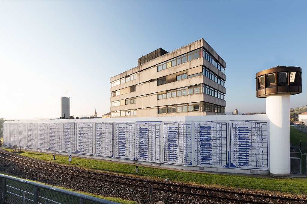 An der Außenmauer des Gefangenenhauses etwa hat Ramesch Daha auf einer 100m langen Wandmalerei an die Opfer eines besonders schrecklichen Endphaseverbrechens im Zweiten Weltkrieg erinnert, als am 6. April 1945 hunderte, kurz zuvor aus dem Zuchthaus Stein entlassene, überwiegend politische Häftlinge sowie Direktor und drei Gefängniswärter ermordet wurden. Auszüge aus dem Register der Strafgefangenen, überdimensional an die Wand geschrieben, zeigen im Umfang ihrer schlichten Aufzählung das Ausmaß des tragischen Geschehens.