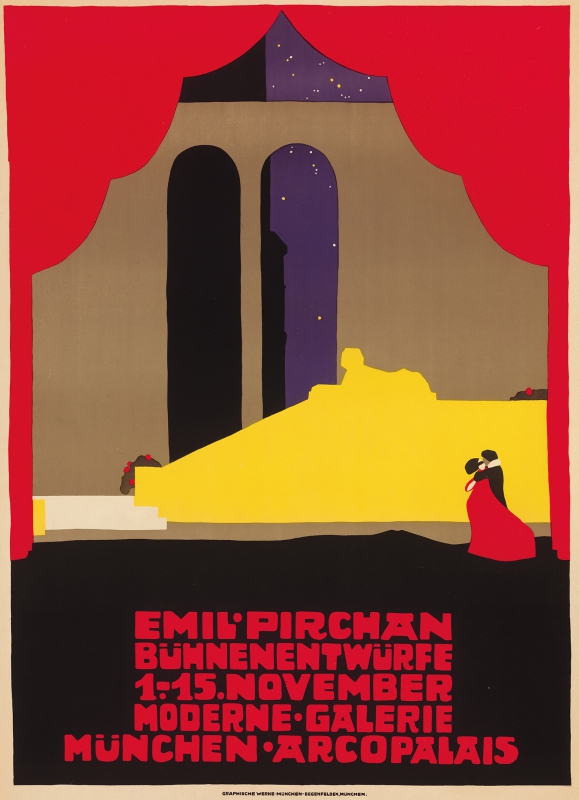 Plakat zur Ausstellung Emil Pirchan. Bühnenentwürfein der Modernen Galerie im Arcopalais in München, 1912Druck: Graphische Werke München-Eggenfelden, MünchenLithografie auf Papier, 123 × 92,4 cmSammlung Steffan/Pabst, ZürichFoto: Sammlung Steffan/Pabst, Zürich© Nachlass Emil Pirchan, Sammlung Steffan/Pabst, Zürich