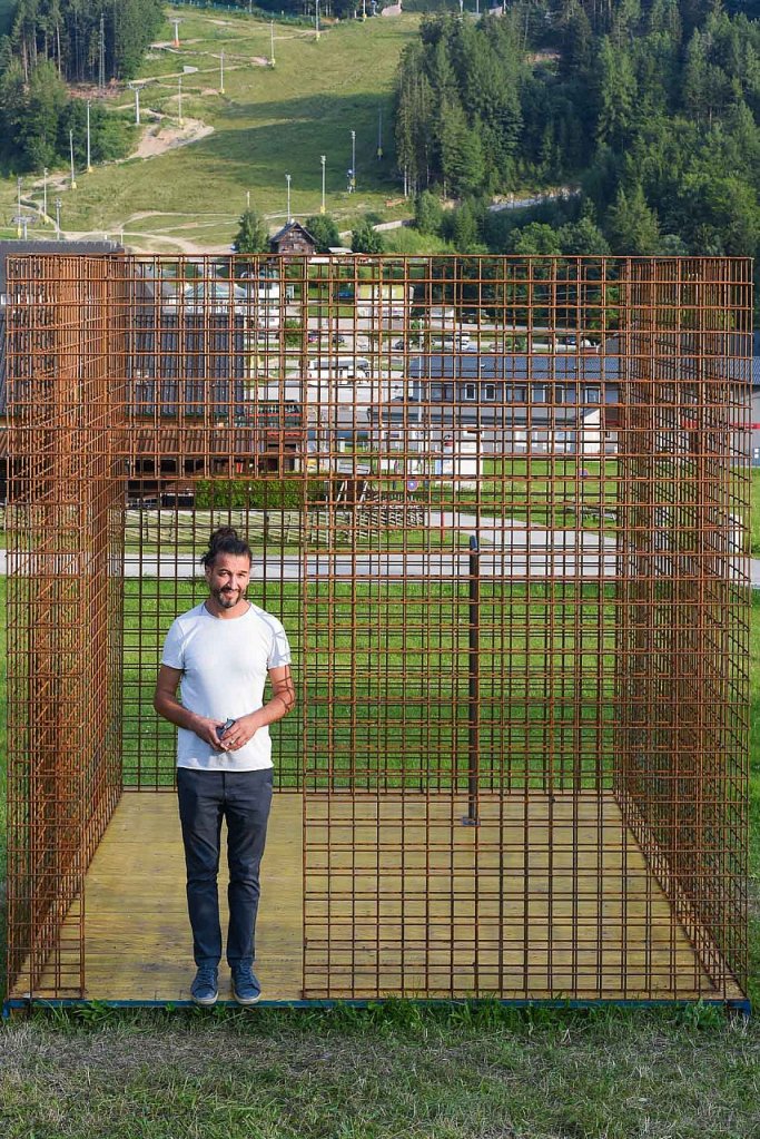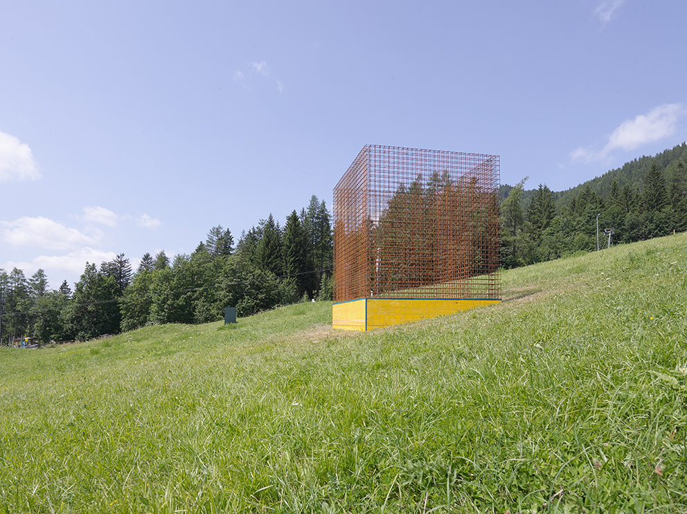 Manche Stimmen sind schon lange verklungen, aus den Ohren verschwunden. Die Natur wird immer leiser. Der Platz wurde eingenommen, viele Arten sind gegangen. In Answer Nature´s Call adressiert Elvedin Klačar das globale Artensterben, den Naturverfall als Resultat von Urbanisierung und der zunehmenden Forstwirtschaft. Auf einer Rodelwiese werden die Geister der Tiere auditiv, in Form von Stimmen, zurück in die Region versetzt, fast so, als hätten sie einen neuen Körper gefunden. Die Worte in ein Sprachrohr innerhalb einer begehbaren Skulptur gesprochen, einsehbar und luftdurchlässig. Die Stimmen der Besucher*innen werden gesammelt, aufgenommen und transformiert. Die Dringlichkeit, den stillen Ruf hörbar zu machen, steht im Fokus der Arbeit. Die physische Verdrängung schafft Aufmerksamkeit, lässt Töne erklingen, die vergangene Körper imaginieren und an sie erinnern.