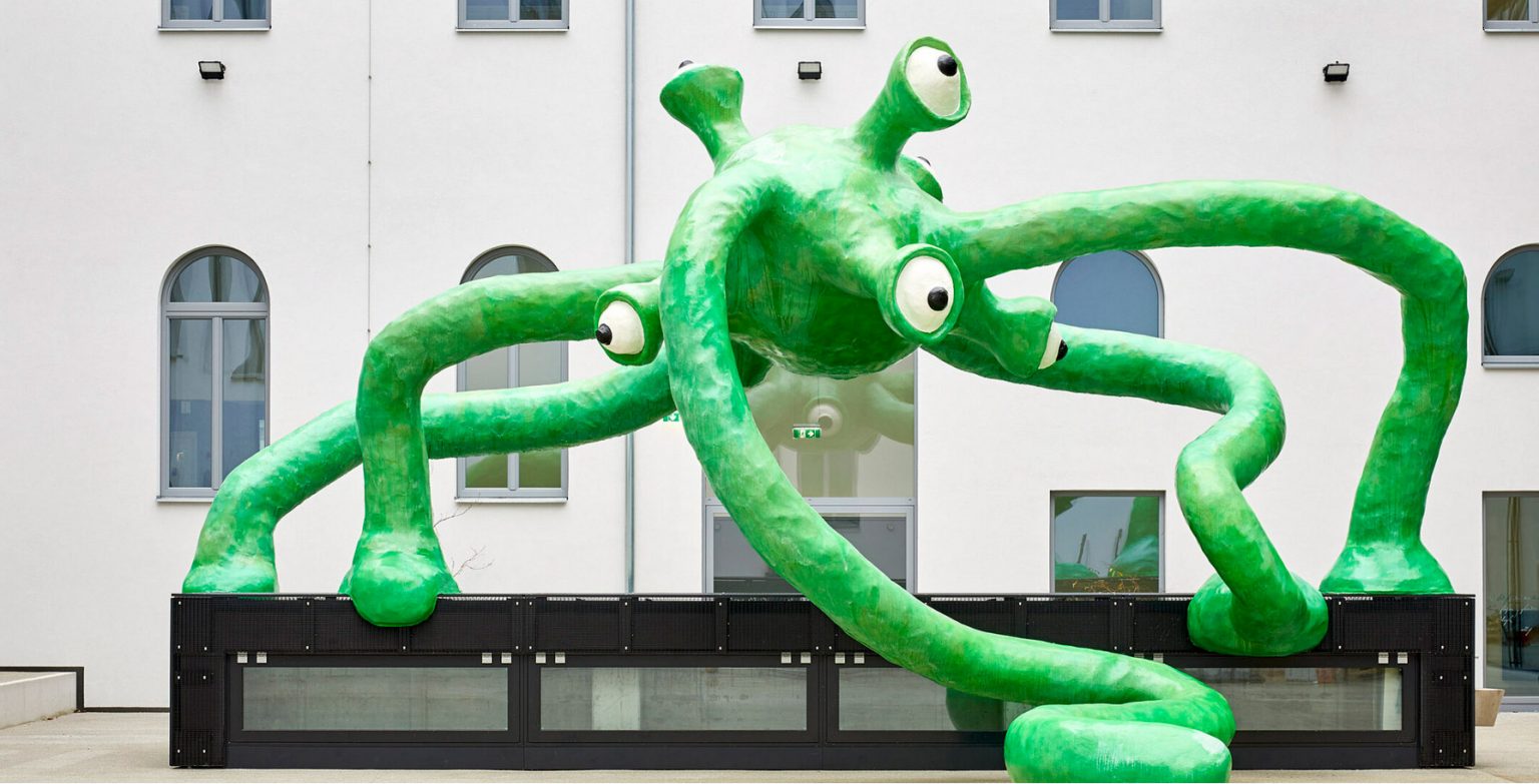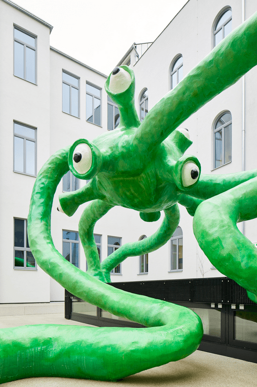 Kunst im (halb)öffentlichen Raum realisiert BIG ART. Schulen sind dafür ein beliebtes Pflaster und da kann es schon mal vorkommen, dass ein green slimy monster dort landet…