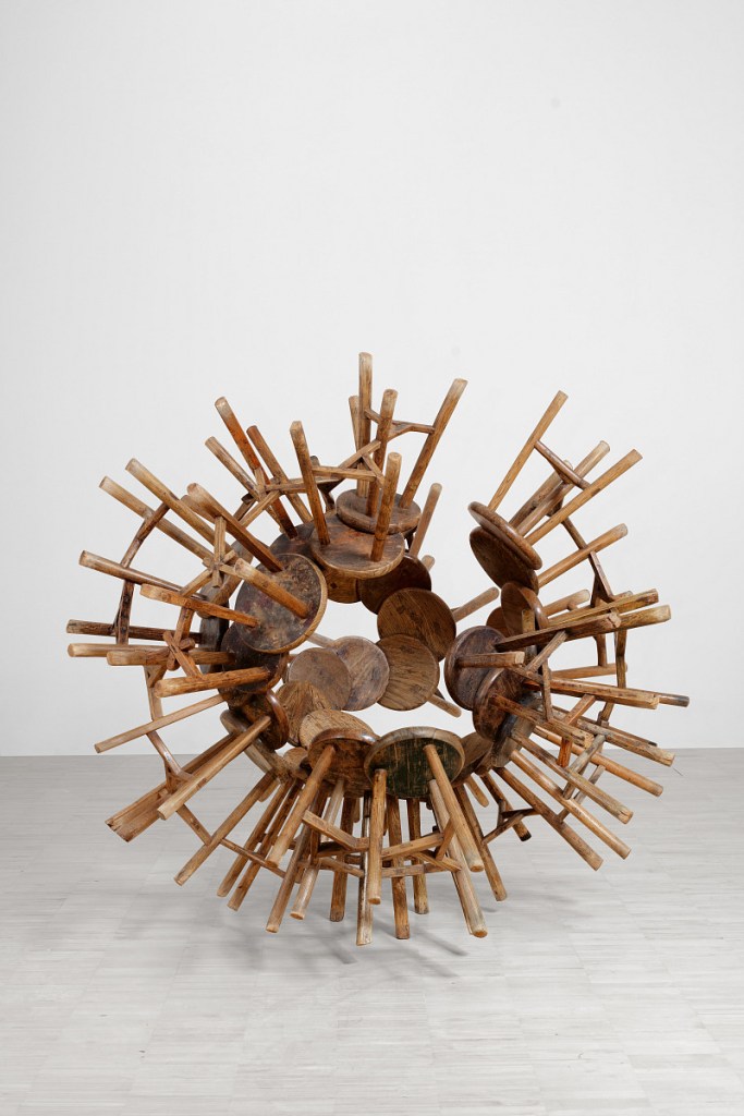 All diese Readymades – das Laufband von Julian Assange oder der mit geheimem NSAMaterial gefüllte Stoffpanda – lassen uns die Welt auf ungebräuchliche Weise wahrnehmen. Ohne das Arrangement der von Flüchtlingen am Strand hinterlassenen Schwimmwesten, die sich wie eine Lotosblume um eine tonnenschwere Kristallkugel legen, würde die Katastrophe der Migranten bald wieder unanschaulich werden: vergessen durch Gewöhnung.