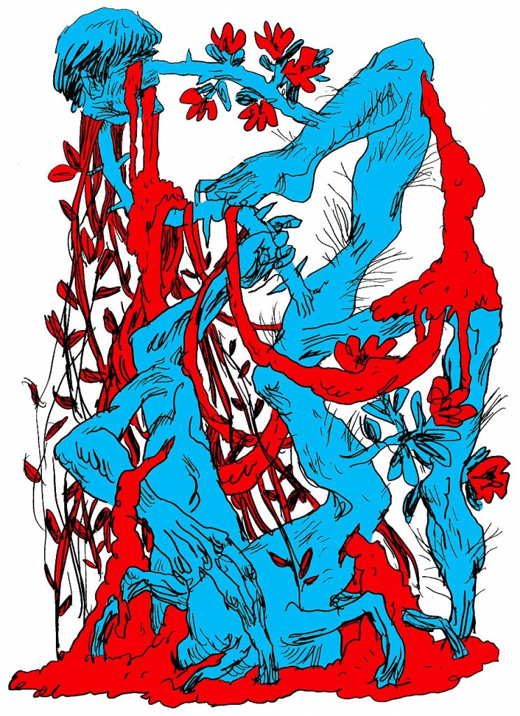 Seine Bäume verwandeln sich, sie verschmelzen zu traumhaften Mischwesen aus Menschen, Tieren und Pflanzen. Sie sind Teil des Universums von Kybele, der römischen Göttermutter. Ihr Mythos dreht sich um Geschlechterdualismus, denn sie entstand durch die Befreiung der Männlichkeit eines dämonischen Zwitterwesens. Geschlechtliche Identitäten, Queerness und Sexualität sind immer wiederkehrende Bezugspunkte in Anatoly Belovs künstlerischen Arbeiten.