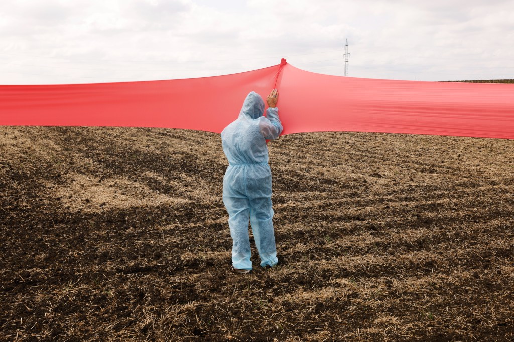 Auch Markus Guschelbauer hat den Fokus auf das Umfeld von Weikendorf gerichtet: das Marchfeld, das neben seinen urtümlichen Naturräumen als „Kornkammer Österreichs“ vor allem riesige Agrarflächen umfasst. Die fotografischen Arbeiten von Markus Guschelbauer sind für ihre vielschichtigen Inszenierungen bekannt, die den fotografierten Raum und das Medium auf unterschiedliche Weise miteinander verweben und reflektieren. Häufig sind es vorgefundene Landschaftsräume, in die mittels geometrischer Farbflächen, Liniengerüste oder dem queer definierten Körper des Künstlers interveniert wird. Diese auf den ersten Blick spielerisch anmutenden Irritationen erzeugen ein reizvolles Spannungsfeld von Bild- und Objektebenen. Sie sind aber vor allem ein Vehikel, unsere Wahrnehmung von Natur und Gesellschaft immer wieder zu überprüfen und produktiv in Frage zu stellen.