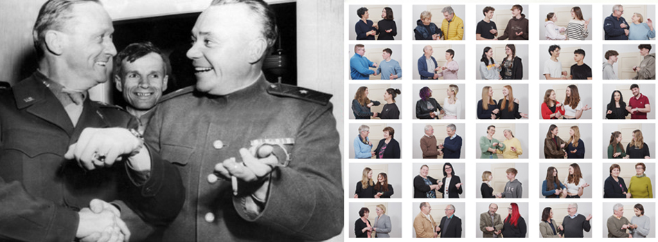 Im ersten Akt Anfang April erfolgt ein Reenactment dieses Händeschüttelns, die Bevölkerung ist eingeladen, im historischen Stadtsaal die Szene nachzustellen und zu performen, davon soll eine filmische Dokumentation entstehen.
