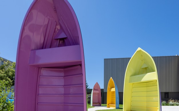 Pressls fünf Aluminiumboote sind in fröhlichen Farben lackiert und erhalten verankert im historischen Zusammenhang auch ohne Wasser ihre poetisch-sinnhafte Bedeutung und regen gerade durch ihre unkonventionelle Aufstellung dazu an, Dinge und Gegebenheiten aus einer anderen Perspektive zu betrachten, die abseits von Normen und Gewohnheiten neue Möglichkeiten eröffnen können.
