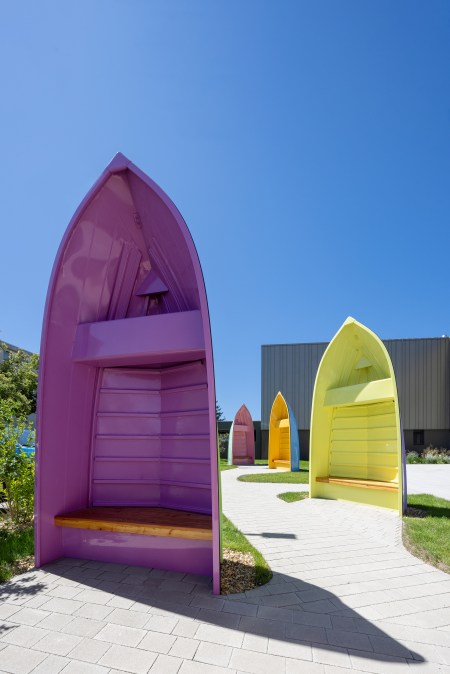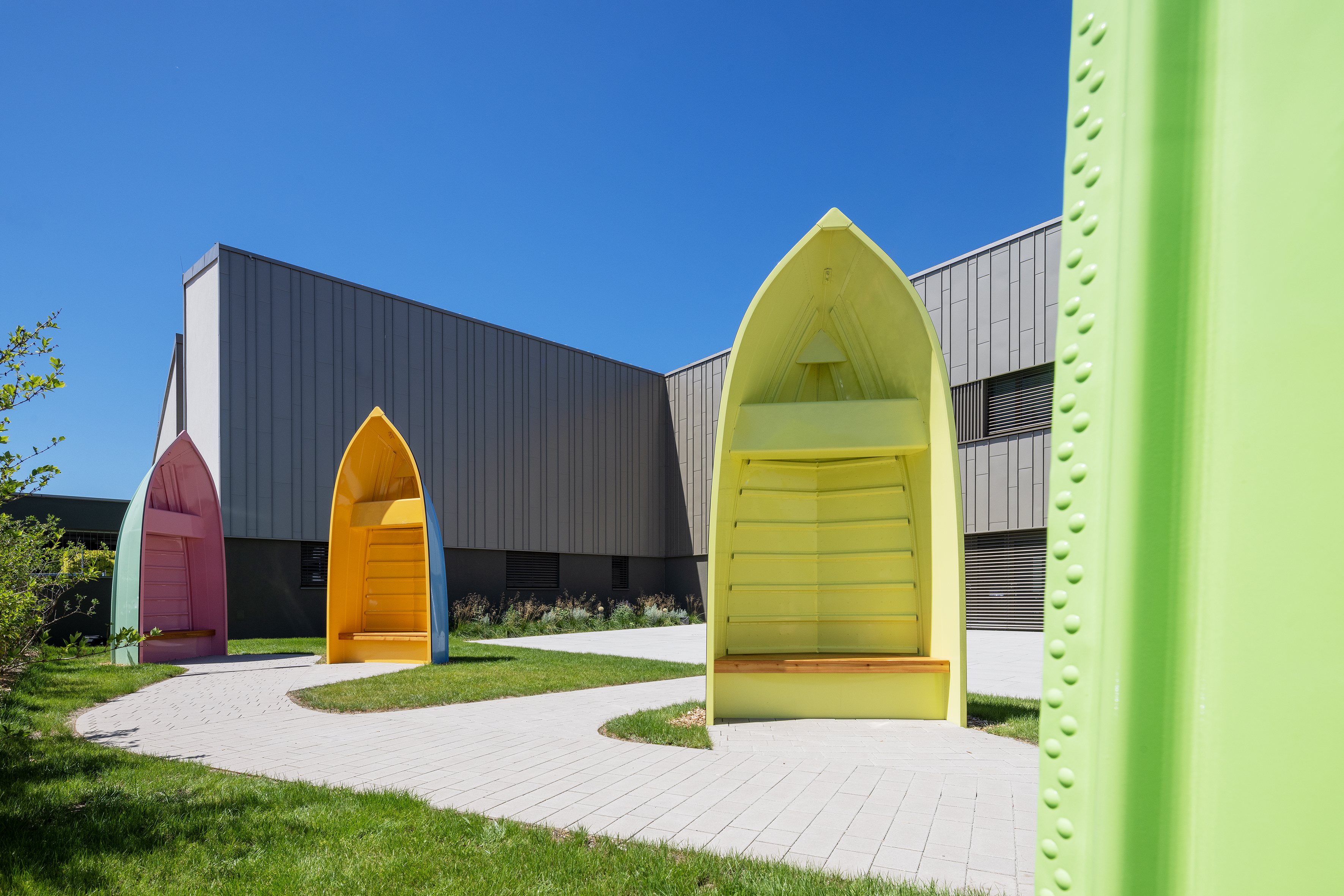 Kunst-am-Bau-Projekte haben das Potential, atmosphärische, kreative, spielerische und symbolische Qualitäten hinzuzufügen, die für alle Anwesenden positive Impulse liefern. In Himberg ist es gelungen, durch die bunten Bootsskulpturen, die ähnlich wie Strandkörbe als Sitzgelegenheiten dienen, sowohl für die dort lebenden und arbeitenden Menschen als auch für jene, die zu Besuch kommen, einladende Symbole eines ‚sicheren Hafens‘ zu etablieren.