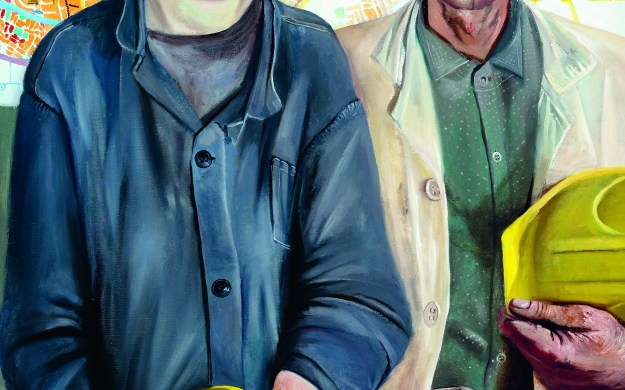 Norbert Wagenbrett, Bauarbeiter und Bauarbeiterin, 1984. Museum Utopie und Alltag (Bestand Beeskow), Norbert Wagenbrett © Bildrecht, Wien 2025, Foto: Thomas Kläber