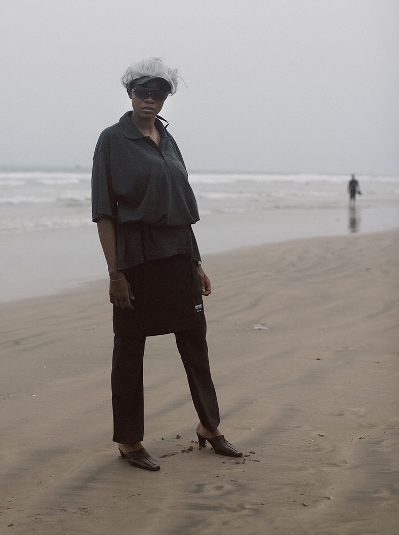 Der deutsch-ghanaische Künstler Jojo Gronostay verwandelt den Kunstraum in einen veritablen Showroom. Es geht um die Mode, vielmehr um Wert, Entwertung und ‚Weiterverwertung‘ in der Modeindustrie.
