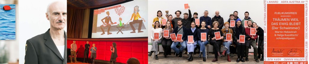 Zur Veröffentlichung der neuen schwimmer-Platte ‘A Heaz’ hatte die schnipselqueen für Klaus Tschabitzer, ‘einen der leiwandsten Popmusiker der Stadt’ (FALTER) das Musikvideo Träumen, weil das ewig bleibt gestaltet, animiert von Martin Hebestreit. Erfreulicherweise 2022 für’s BEST AUSTRIAN ANIMATION FESTIVAL nominiert, gab’s nach dem Screening im Filmcasino bei der Preisverleihung im Semperdepot als freudige Überraschung den Publikumspreis… der schwimmer